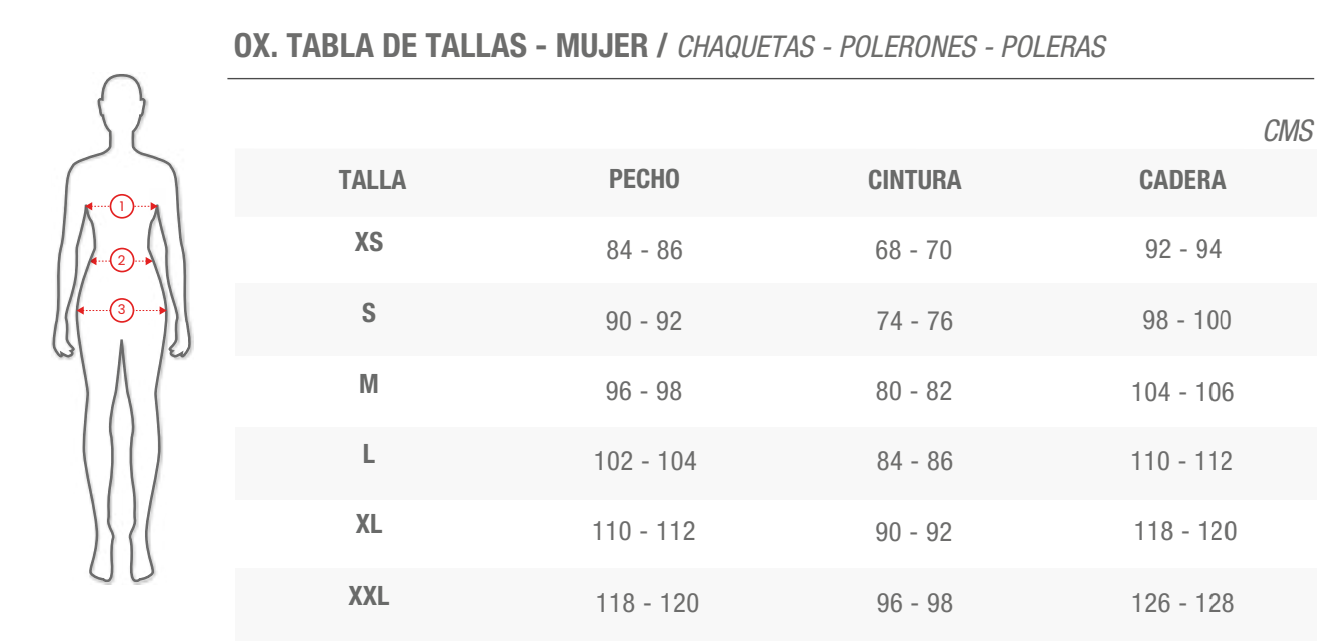 Nota: Calcula tus medidas corporales y luego selecciona tu talla de producto.